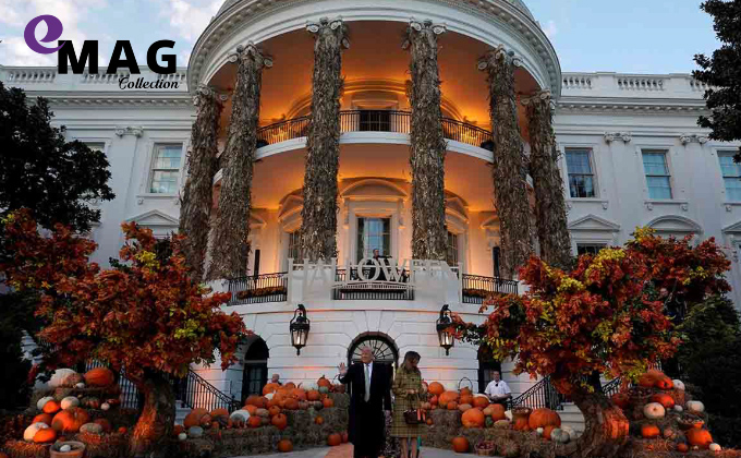 El presidente Donald Trump y la primera dama Melania Trump comenzaron la celebración de Halloween en la Casa Blanca repartiendo dulces a los niños en un evento festivo en South Lawn.